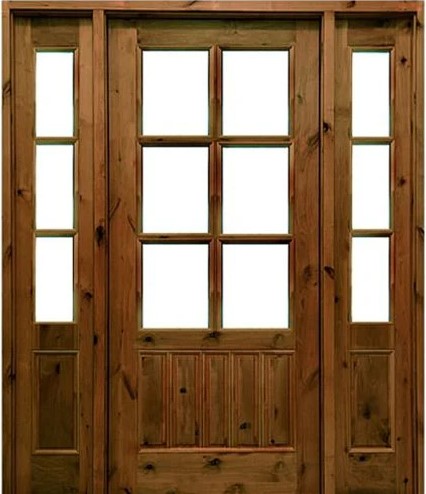 • Knotty Alder 6-Lite TDL Entry Door with Sidelites and Grooved Bottom Panel