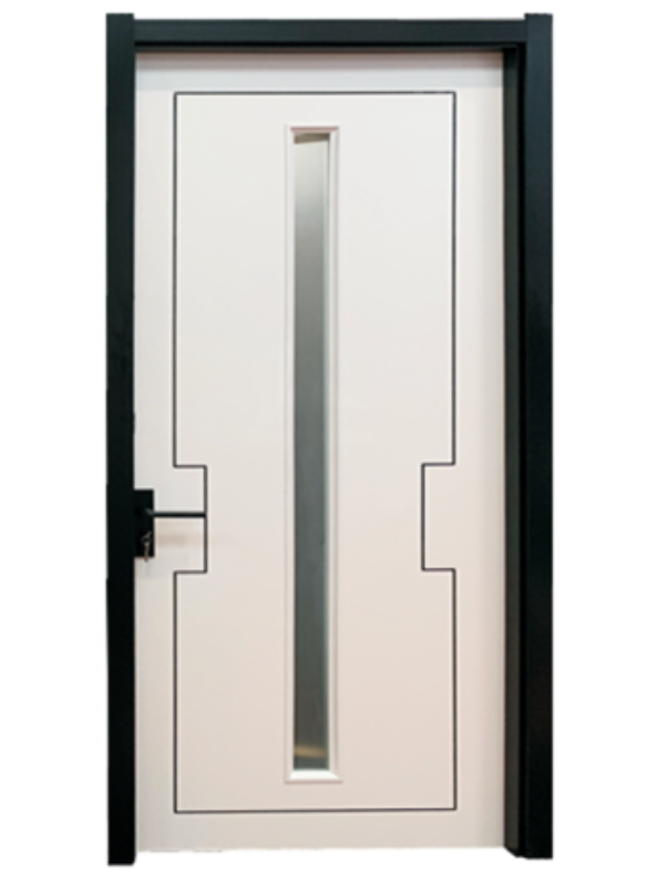 • Modern WPC Interior Door with Vertical Glass Panel – White & Black Design