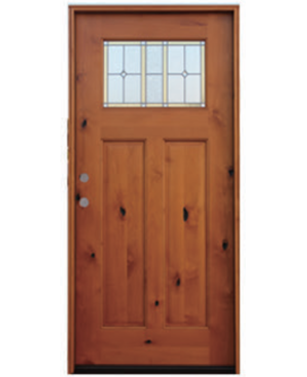 Craftsman Knotty Alder Wood Front Door with Decorative Glass