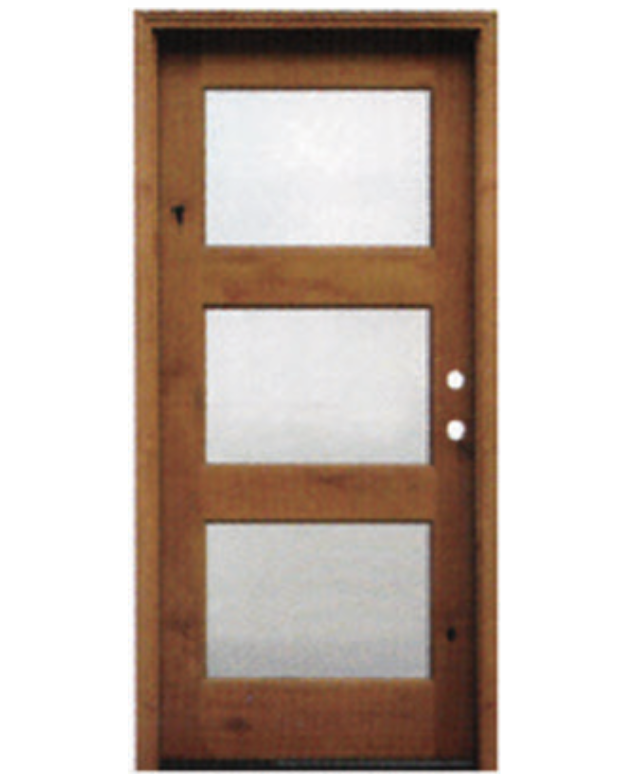 Modern Knotty Alder Wood Front Door with Three Frosted Glass Panels
