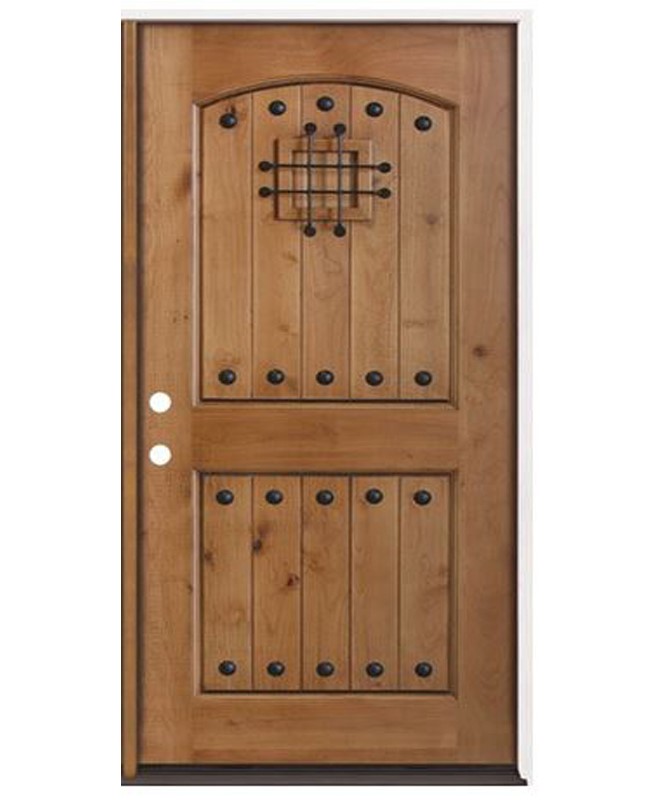 Rustic Knotty Alder Wood Entry Door with Speakeasy and Clavos Accents
